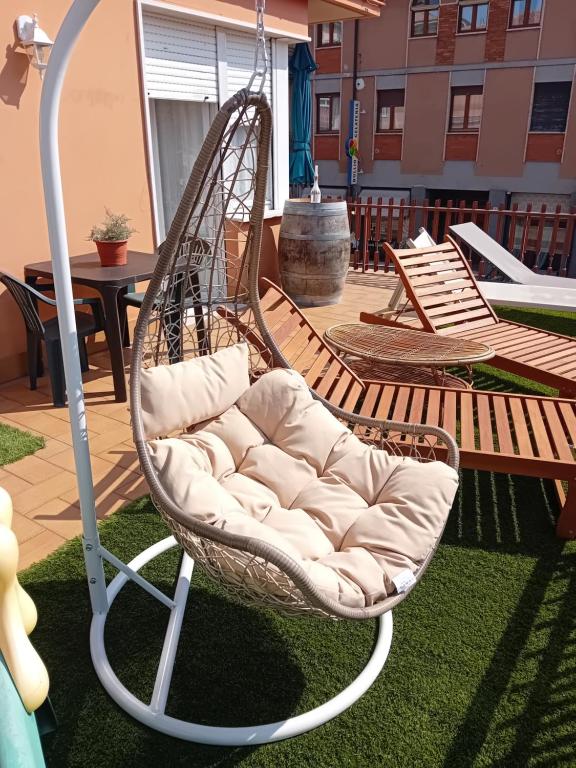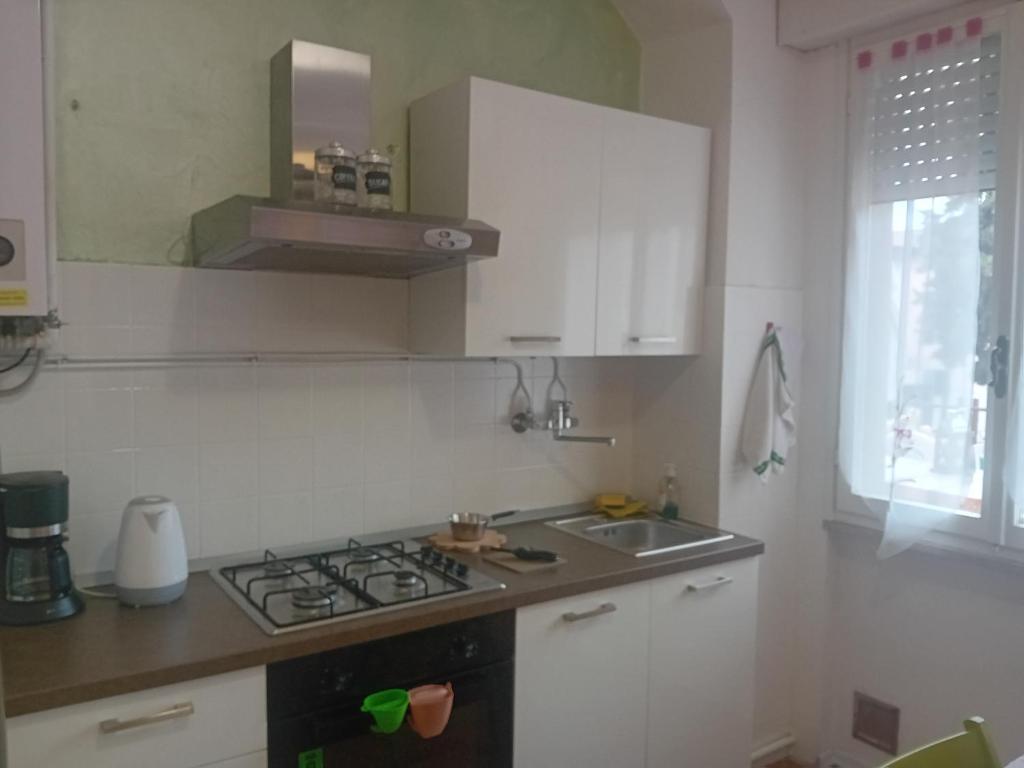 Struttura in zona centrale a 100 metri dal lungolago ed a ridosso dalle principali spiagge libere, appartamento curato e semplice, molto spazioso con servizi adatti a famiglie disponibili su richiesta come per esempio zaino porta bimbi, passeggino, seggiolone e quant'altro. Sito al primo piano di un edificio di 3 piani, dotato di garage gratuito in loco, ampio terrazzo solarium arredato e vivibile, utile anche in caso si desideri mangiare all'aperto. Condizionatori, riscaldamento e ventilatori presenti per area giorno e notte.